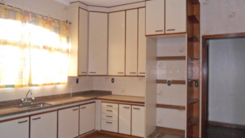 03 DORMITÓRIOS TODOS COM ARMÁRIOS EMBUTIDO, MADEIRA MOGNO (01 SUITE COM PISO DE MADEIRA), SALA DE ESTAR, SALA DE JANTAR, BANHEIRO SOCIAL, COZINHA PLANEJADA, DESPENSA, BANHEIRO EXTERNO, ÁREA DE SERVIÇO E 03 VAGAS NA GARAGEM.